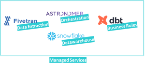 Se utiliza dados de outra equipa ou departamento e já se encontra num armazenamento que pode ser referenciado pelo seu Datawarehouse (tais como Amazon RDS, Amazon S3, Azure Storage Account ou Google Cloud Storage, etc.) então parabéns, pois a sua arquitetura de dados backend pode começar apenas com estas duas ferramentas. No entanto, a maioria dos projetos exigirá a extração de novos dados, caso em que poderá utilizar um managed service como Fivetran ou Stich, que se encarregará do alojamento e manutenção dos conectores, basta escolher a fonte, o alvo e pay per use.